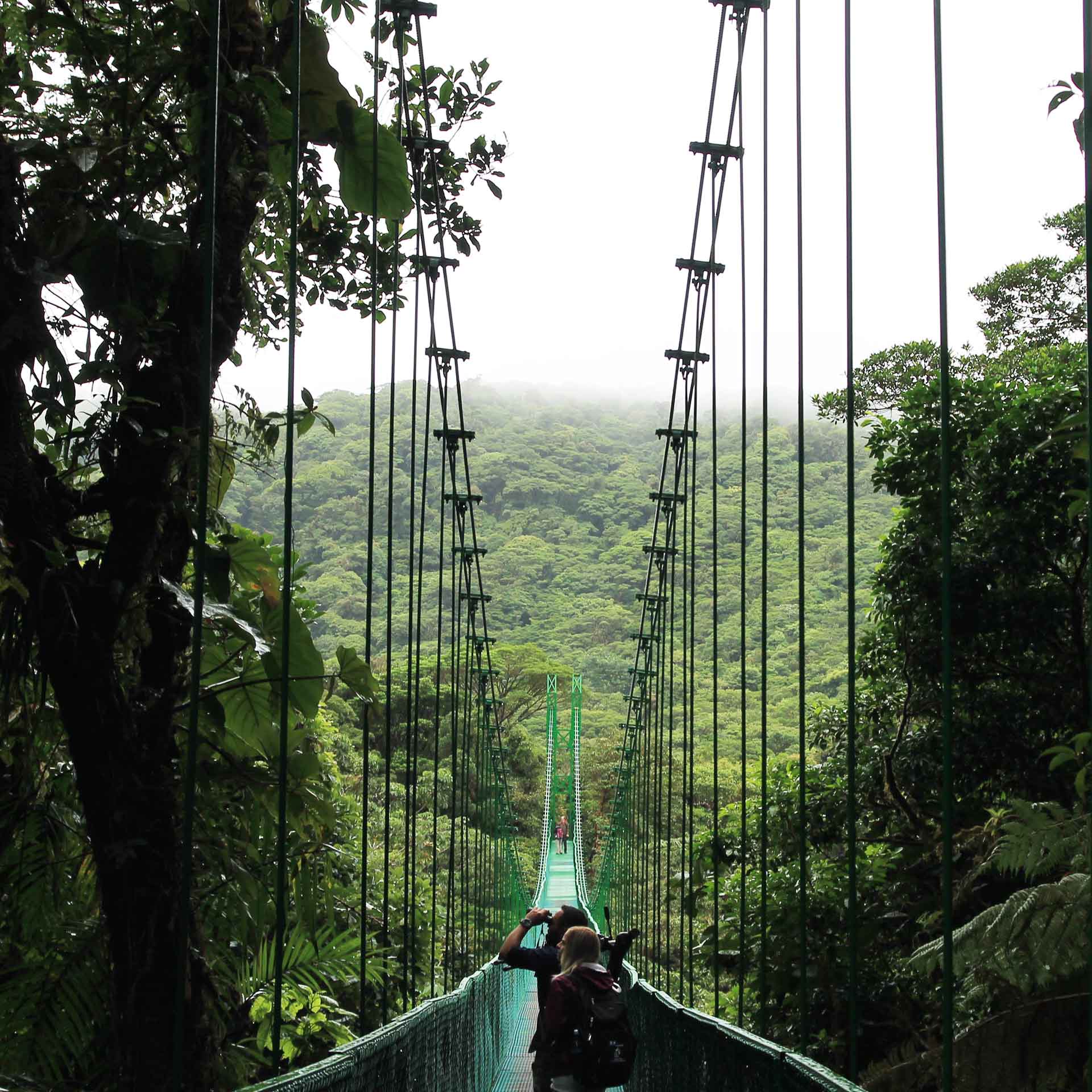 La Monteverde Cloud Forest Reserve, in Costa Rica, offre una biodiversità che lascia senza fiato. Numerosi sentieri all’interno della riserva, facilmente percorribili e della durata di una o due ore, permettono di avvistare piante e animali unici. Alcuni sentieri sono intestati ai fondatori della riserva Wilford Guidon e George Powell, studiosi naturalisti che preservarono questo ecosistema, altri attraversano i ponti sospesi per poter ammirare dall’alto i boschi di elfi scolpiti dal vento e le foreste pluviali con gli alberi ad alto fusto addobbati con orchidee, bromelie, felci, viti e muschi per uno spettacolo unico. Le foreste paludose si sviluppano nelle aree con scarso drenaggio mentre in altre parti della riserva, numerosi corsi d’acqua creano cascate, rapide e pozze d’acqua.